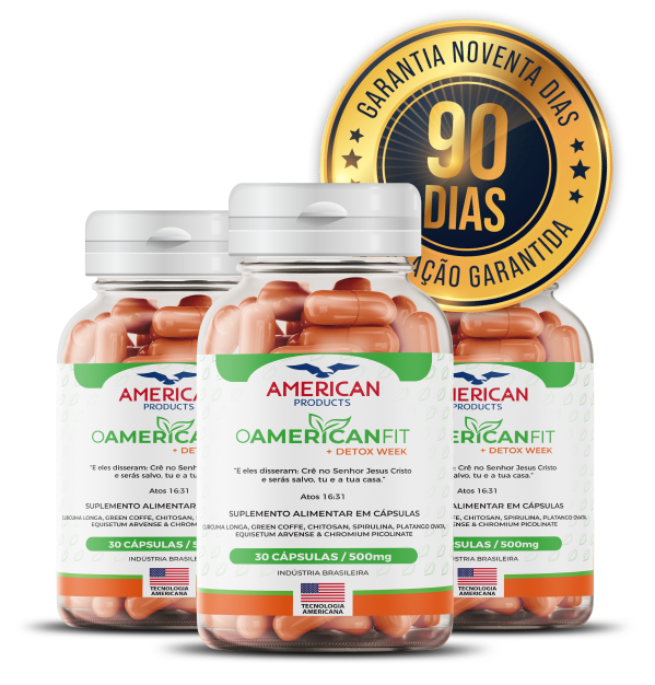 As substâncias ativas encontradas no O AMERICAN FIT vão desintoxicar o seu corpo, eliminar as toxinas e estimular o seu metabolismo e organismo, proporcionando assim, o bem estar definitivo, a queima de gordura localizada e a restauração da saúde do corpo. Com O AMERICAN Fit você já consegue ver diferença já nas primeiras semanas de uso.